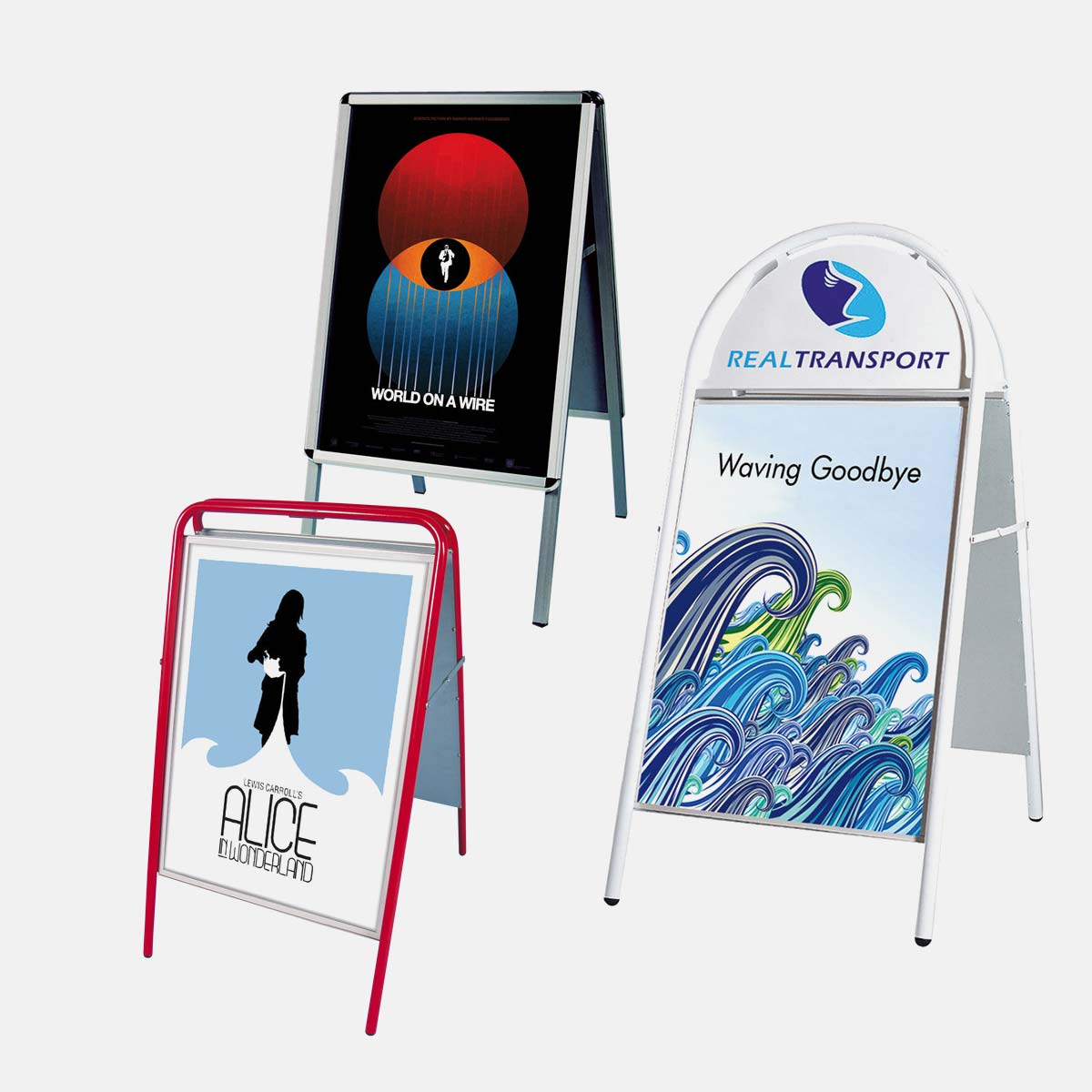 Unsere Kundenstopper bzw. A-Board sind der Klassiker für flexible Werbepräsentationen. Dank den praktischen Klapprahmen wechseln Sie Ihre Botschaften in Sekunden. Transparente Antireflexfolien schützen Ihre Drucke vor Schmutz und Reflexionen. Stabile Aluminiumprofile und Wasserablauflöcher sorgen für Wetterbeständigkeit. Erhältlich in vielen verschiedenen Formaten, eignet sich das A-Board ideal für den Innen- und Außeneinsatz, um Angebote und Werbung professionell und wirkungsvoll zu präsentieren.