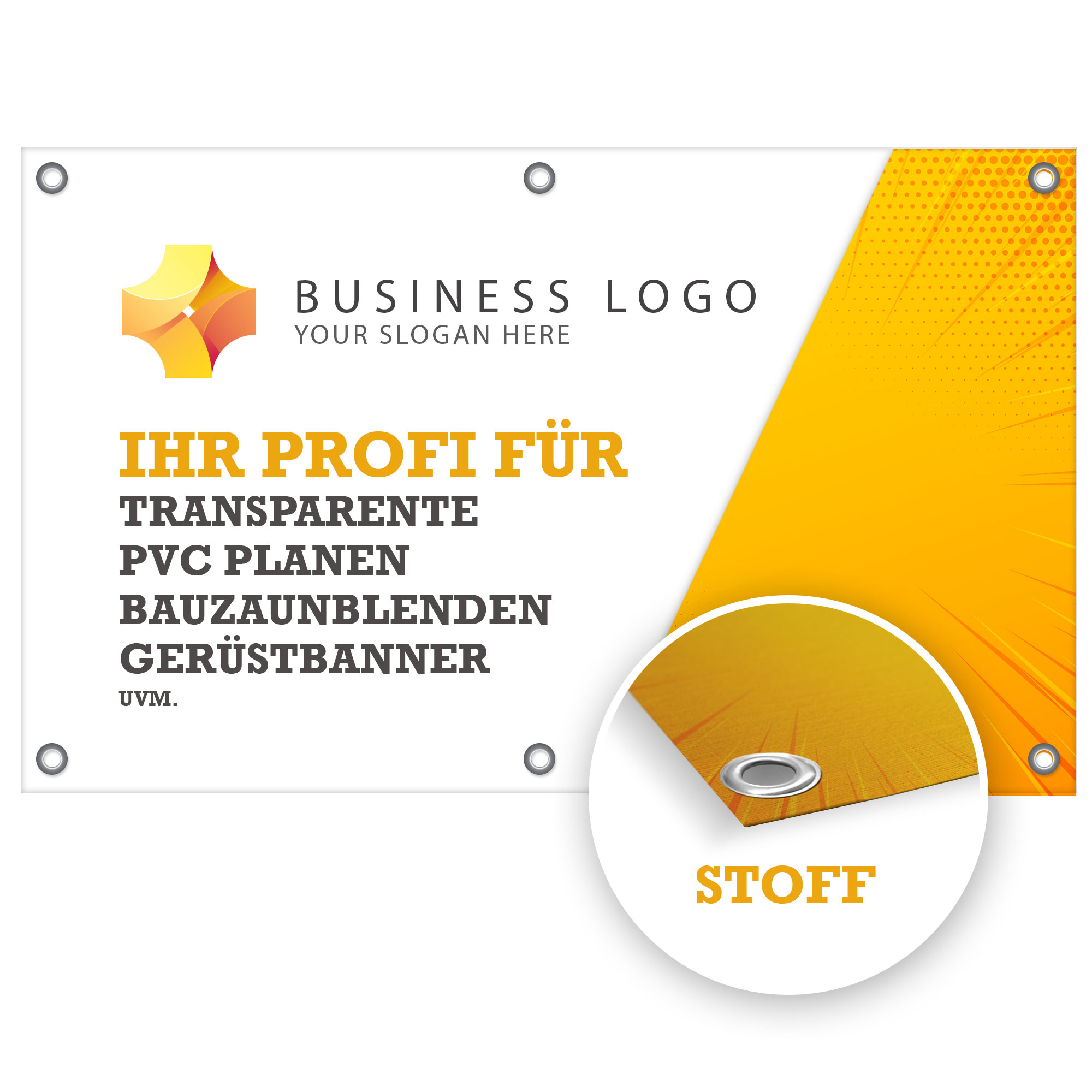 Produktinformationen "Werbebanner Stoff - gesäumt & geöst"